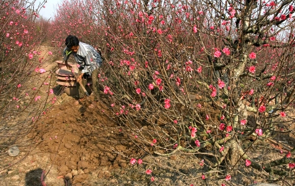 Thay đất và bón phân cho đào sau Tết