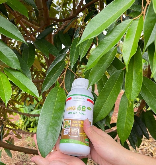 Kingbioworld xin giới thiệu đến bà con King 68 Plus - giải pháp sinh học an toàn, hiệu quả, là bí quyết giúp dưỡng lá sầu riêng đẹp, xanh dày, khỏe mạnh quanh năm của nhiều nhà vườn hữu cơ, được phân phối độc quyền bởi Công ty Cổ phần Kingbioworld.