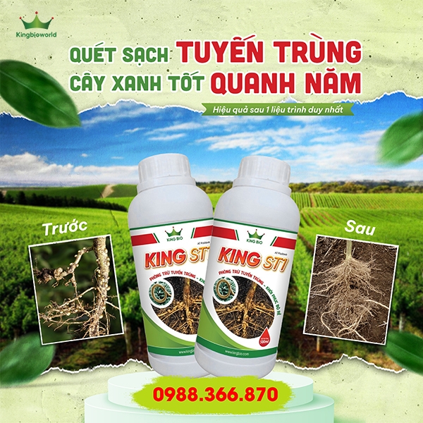 Để phòng trừ và tiêu diệt tuyến trùng gây hại trên cây hồ tiêu nhanh chóng, an toàn, bà con hãy sử dụng sản phẩm King ST1 được phân phối độc quyền bởi Công ty Cổ phần Kingbioworld. Đây đang là sản phẩm được nhiều nhà vườn trồng hồ tiêu theo hướng hữu cơ tin dùng và đánh giá tốt.