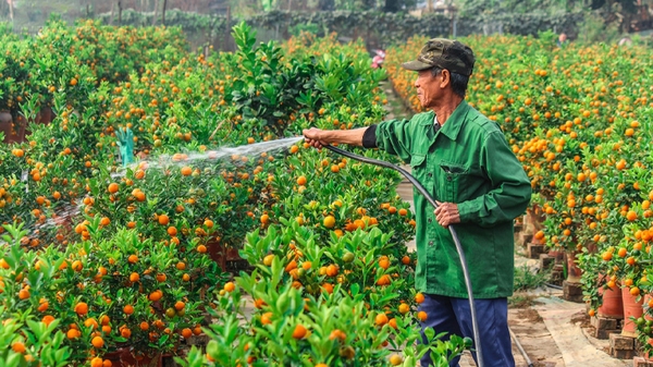 Tưới nước đều đặn đảm bảo quất ra quả đúng dịp Tết