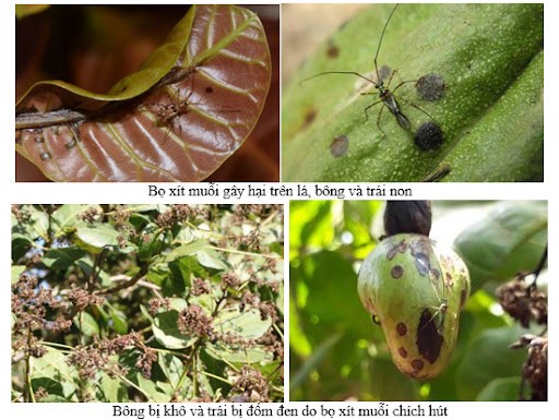 ▪️ Một số loại côn trùng gây hại nghiêm trọng trong thời kỳ ra hoa của cây điều là bọ xít muỗi, bọ trĩ,...